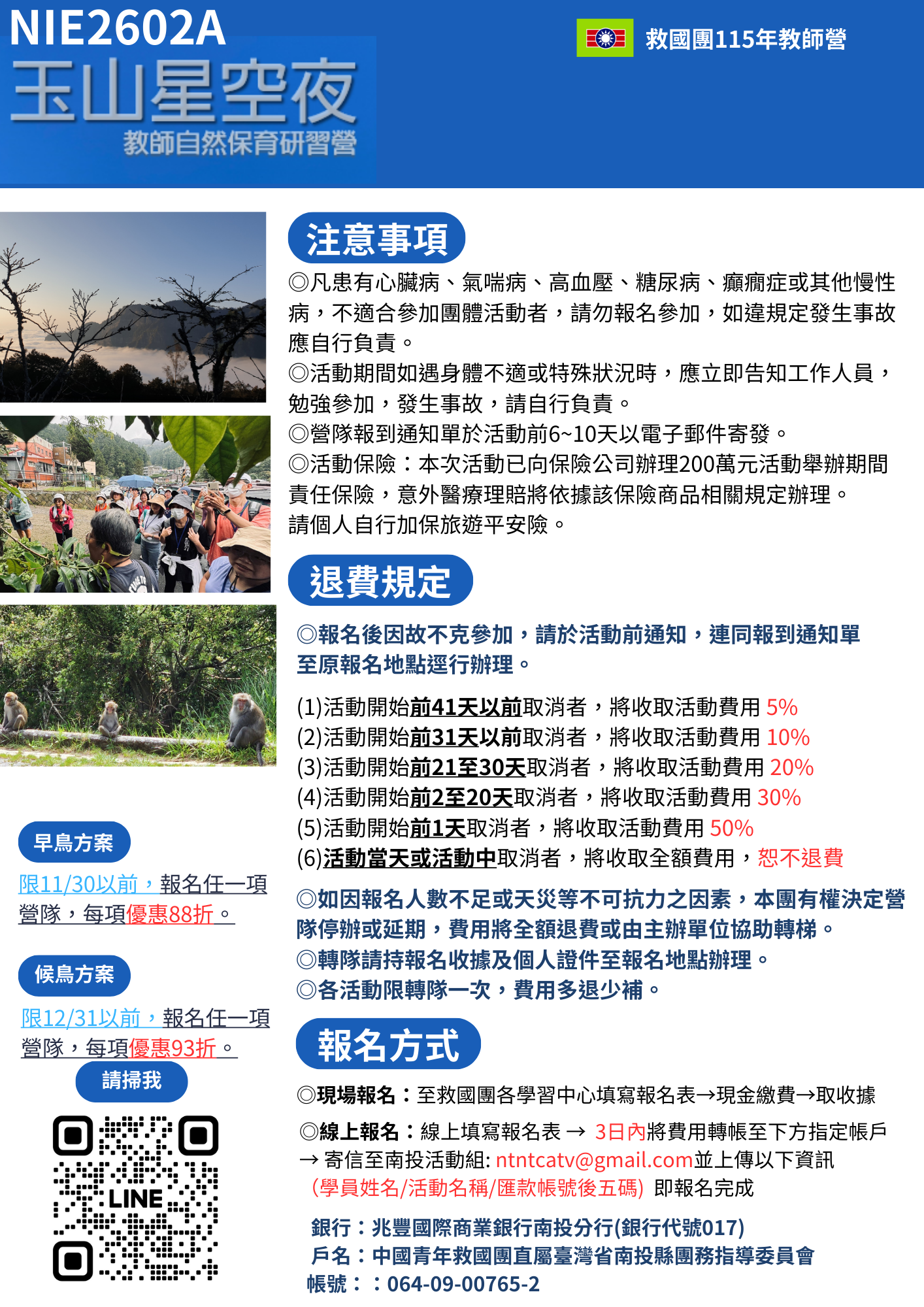 115年教師營 玉山星空夜〜教師自然保育研習營