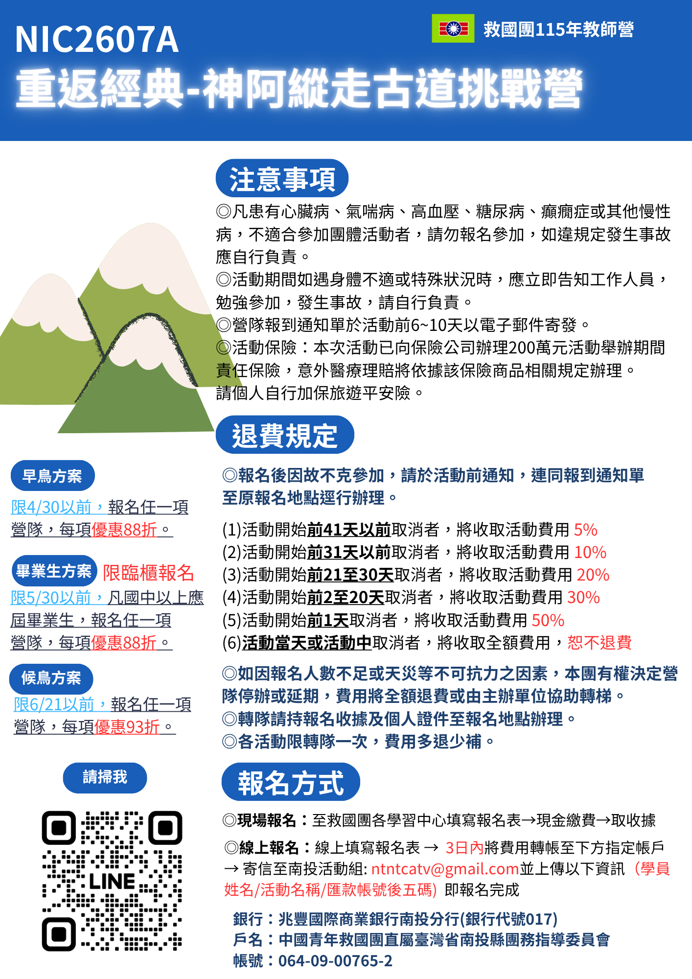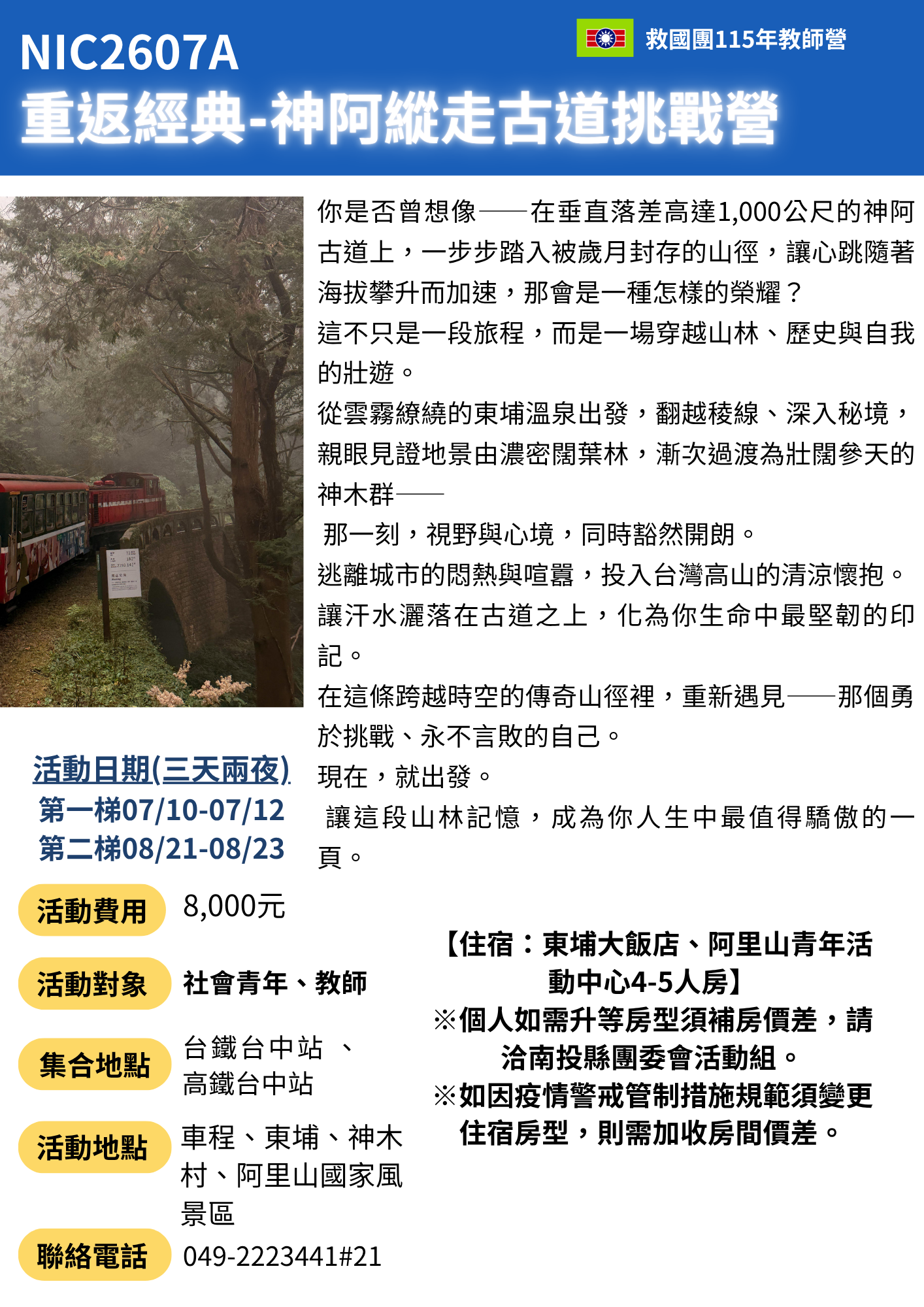 115年暑期 重返經典-神阿縱走古道挑戰營